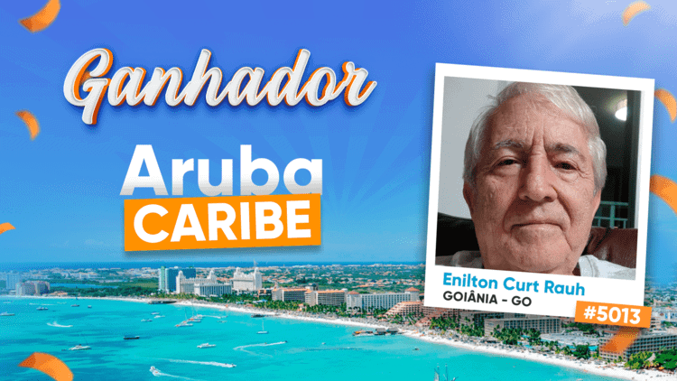 Enilton ganhou uma viagem com 6 diárias e acompanhante para Aruba, uma ilha paradisíaca no Caribe! Ele também ganhou as passagens aéreas e mais R$10.000,00 para gastar no paraíso.