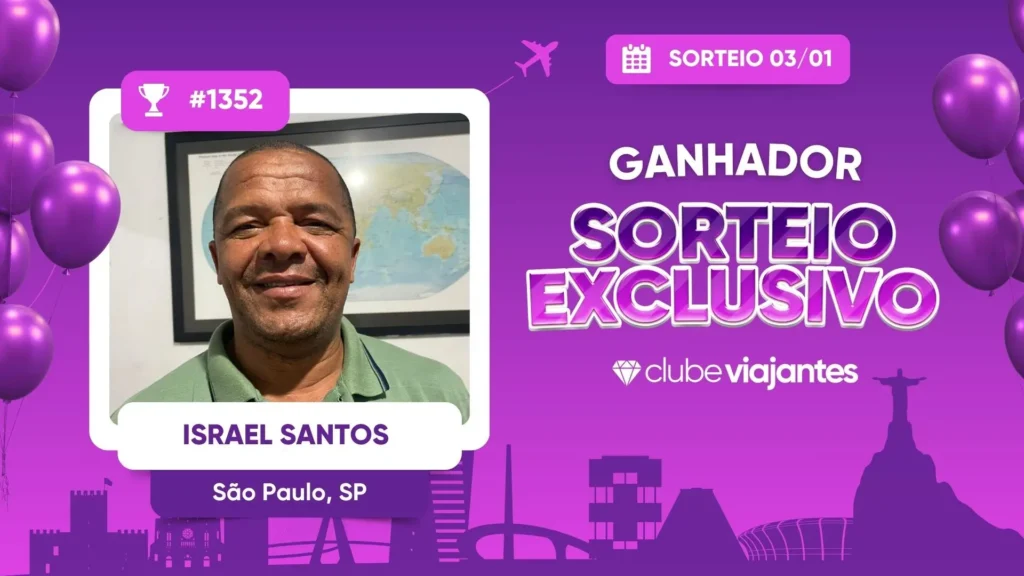 Israel Santos foi o ganhador da 6° edição do sorteio exclusivo do Clube Viajantes!