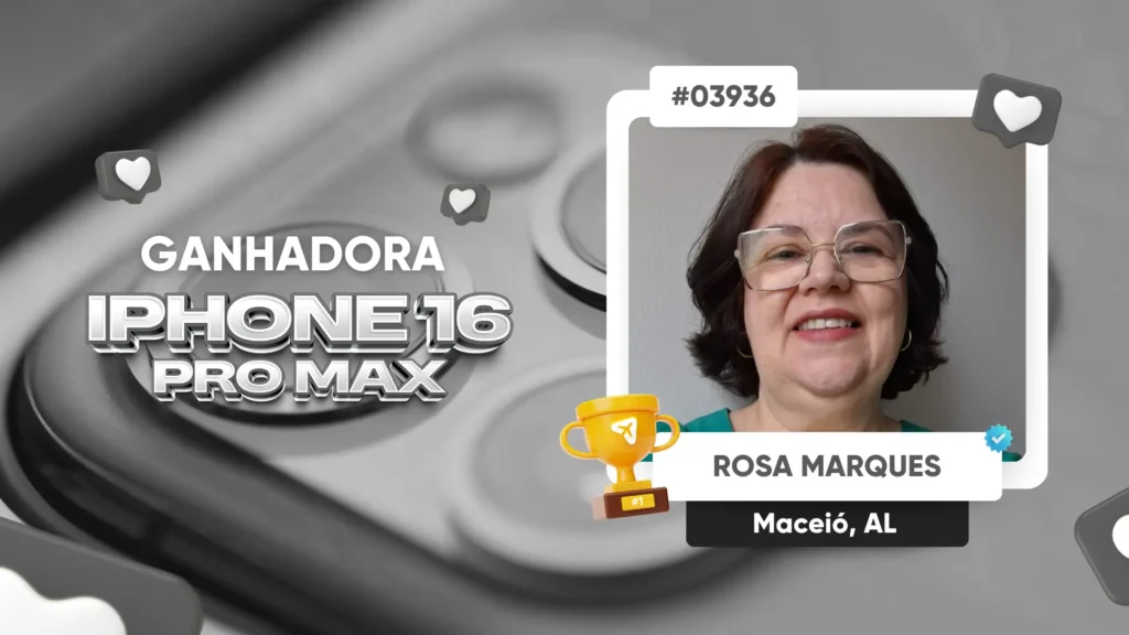 Rosa Marques foi a ganhadora do sorteio do iPhone 16 Pro Max #5!