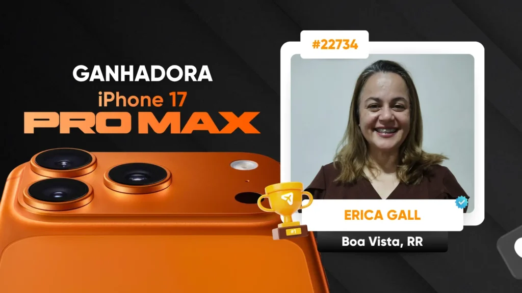 Erica Gall foi a ganhadora do sorteio do iPhone 17 Pro Max!